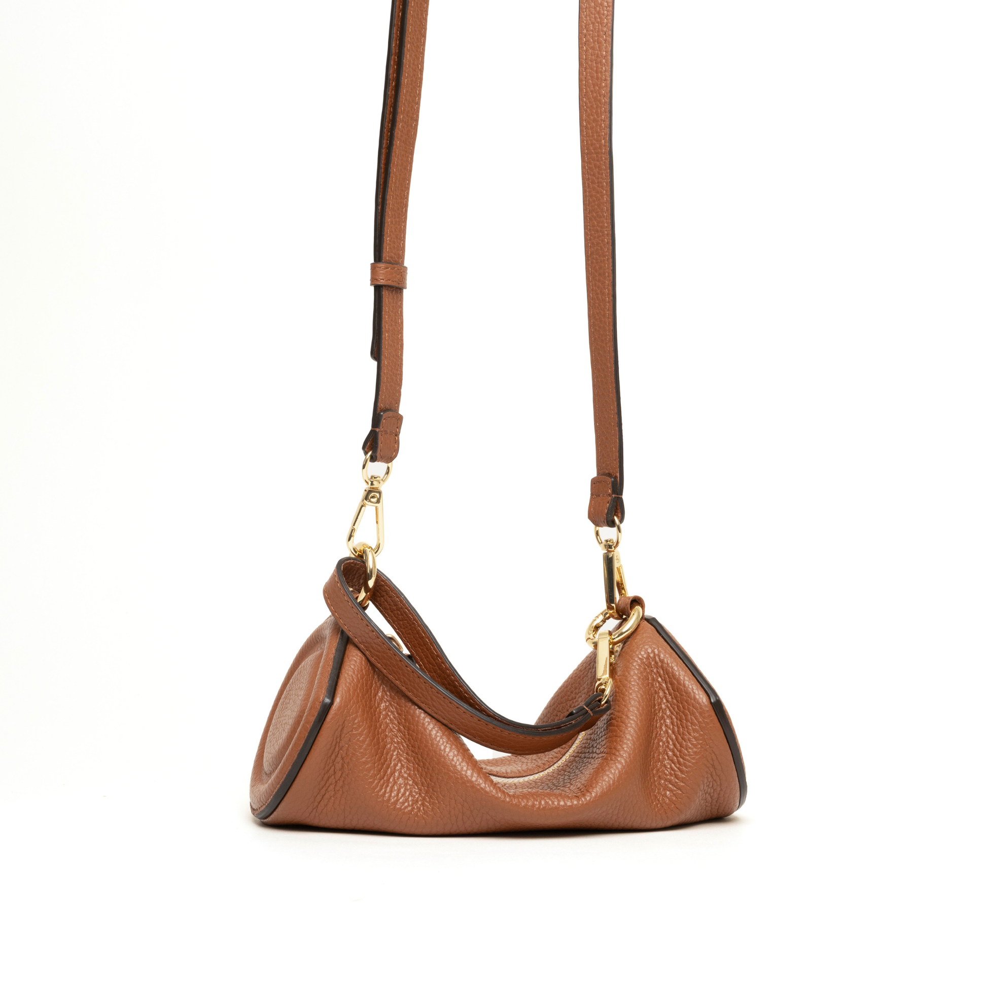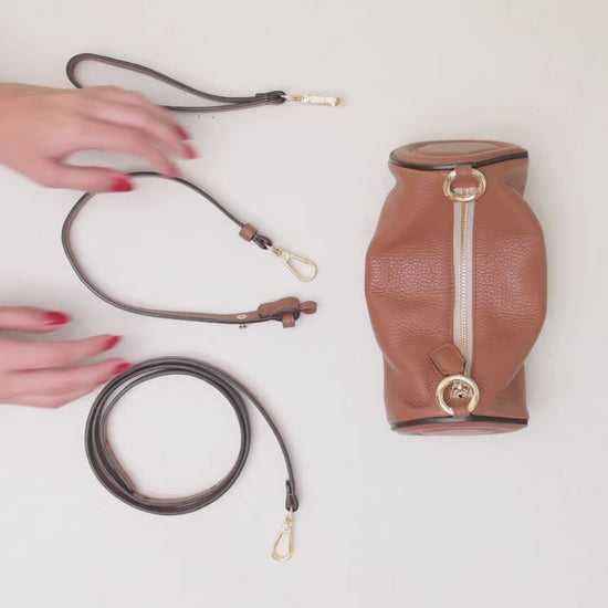 En tamaño mini, perfecto para llevar lo necesario, cómodo y liviano, en cuero italiano suave y forro de gamuza en su interior.